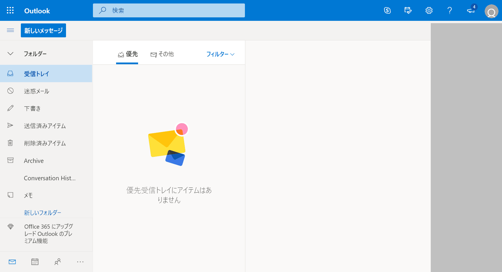 上記のような画面が表示されればOutlook.comのログイン(サインイン)は完了です。