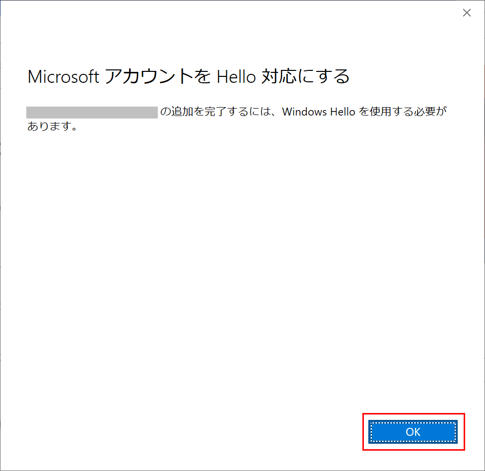 お使いのPCによっては「Windows Hello」に対応をする必要があります。【OK】ボタンを押します。