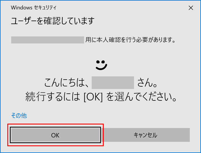 「Windows Hello」で本人確認ができたら【OK】ボタンを押します。