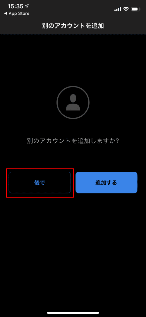 別のアカウントを追加するか確認があります。追加しない場合は【後で】ボタンを押します。