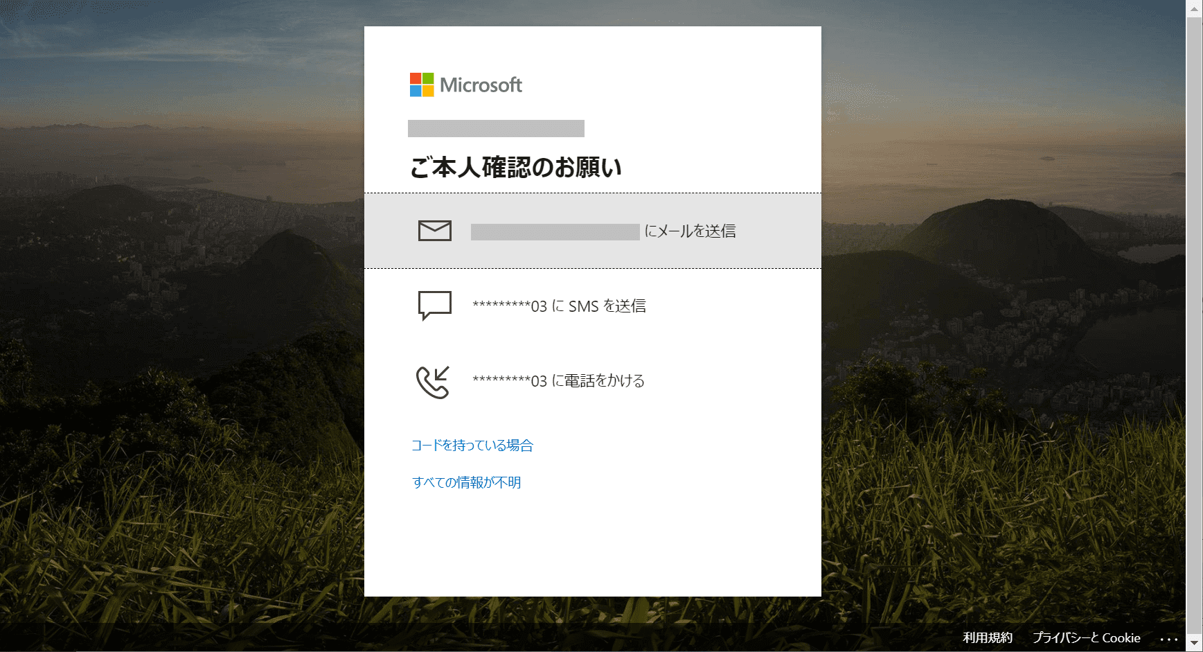 「ご本人確認のお願い」というダイアログボックスが表示されました。お好きな確認方法を選択します。今回は【メールを送信】を選択しました。